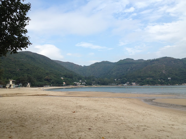 Aan het eind van de wandeling op de Dragon's back kwamen we bij Shek O Beach uit. Dat wil zeggen, nadat we eerst een ritje met een minibusje namen. De wandeling voortzetten op de doorgaande weg was echt geen optie. Veel te smalle weg met veel te veel verkeer.